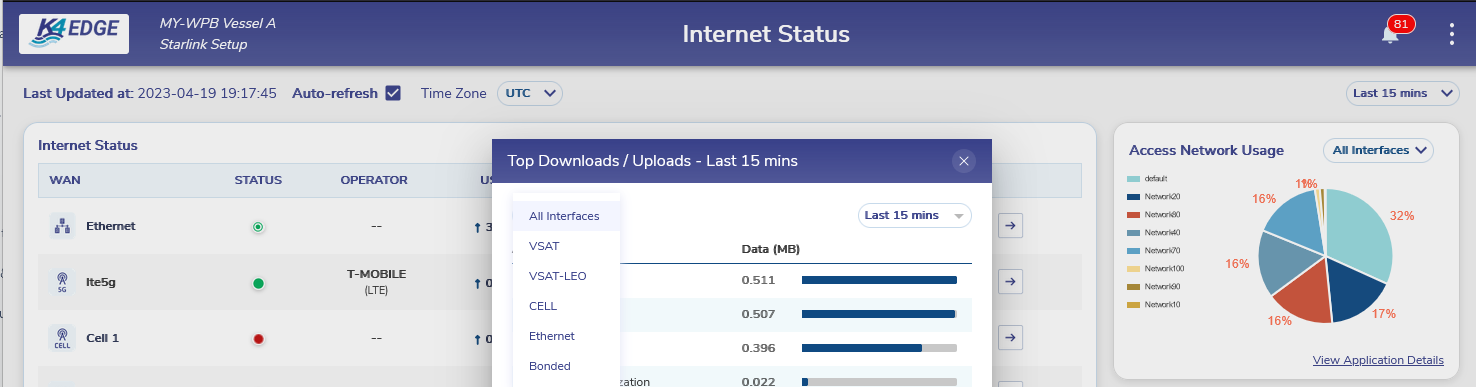 Network usage pie chart is updated in the Dashboard to reflect the Access Network Usage across the WAN links