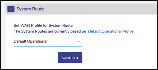 The user can select the specific WAN Profile for System Route using the System Route Configuration option. Using the selected WAN Profile, the traffic will be routed.