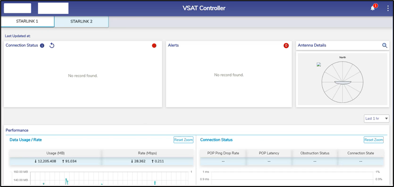 The user can view the data received from the Starlink modem in the VSAT Controller page.