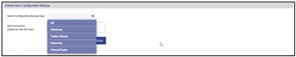 Select the Configuration Backup Type. Configurations are grouped as below. See Figure Select Configuration Backup Type.