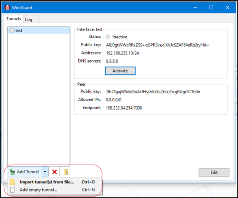 In any case, each EdgeServer Wireguard Client must be configured using the Wireguard VPN client profile downloaded from a Wireguard VPN Server.