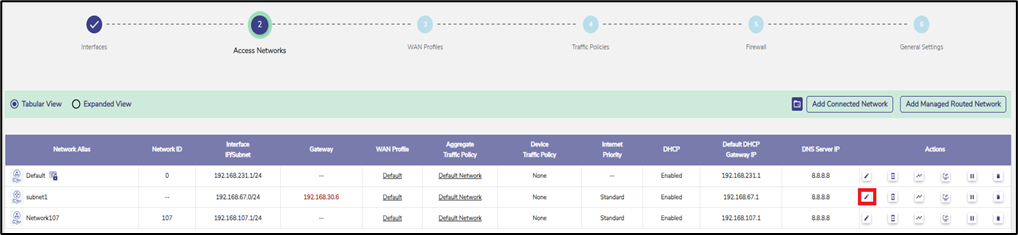 For an existing Access Network, Select the Pencil icon for the Network to use the VPN.