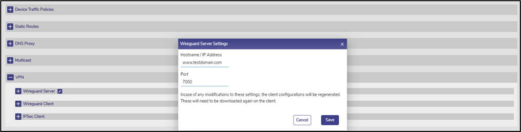 To configure the Wireguard VPN feature, follow the below steps: