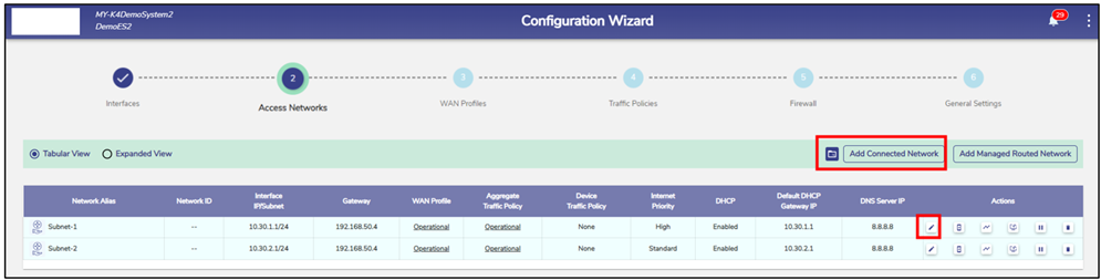 Select the Add Connected Network button to add a new network and configure it as Captive.