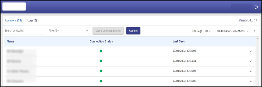 Start button under the Action column enables the user to start the connection of that device. On clicking it the connection will be established given that the Device is online.