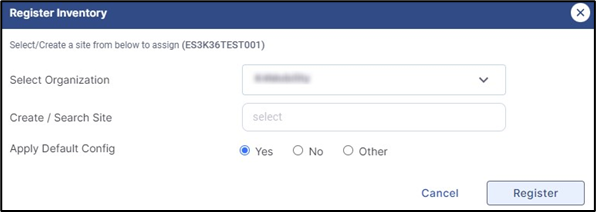 Click Register button to assign the device to the site.