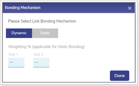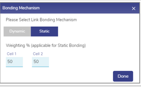 Note: Interfaces/WANs for which Probe Configuration Profile is set to Always Up or High Cost cannot be bonded with other Interfaces/WANs. Link Bonding can be set to Static or Dynamic. By default, the link bonding type is Dynamic, in which case the system distributes the traffic on each WAN link based on performance. In Static Setting, a configured % of traffic is set for each WAN link. For details of the types of link bonding, point to i icon next to the Link Bonding. The user can configure the weighting % of the WAN link.